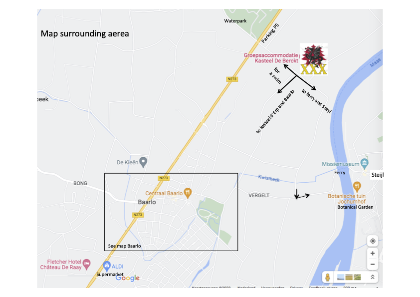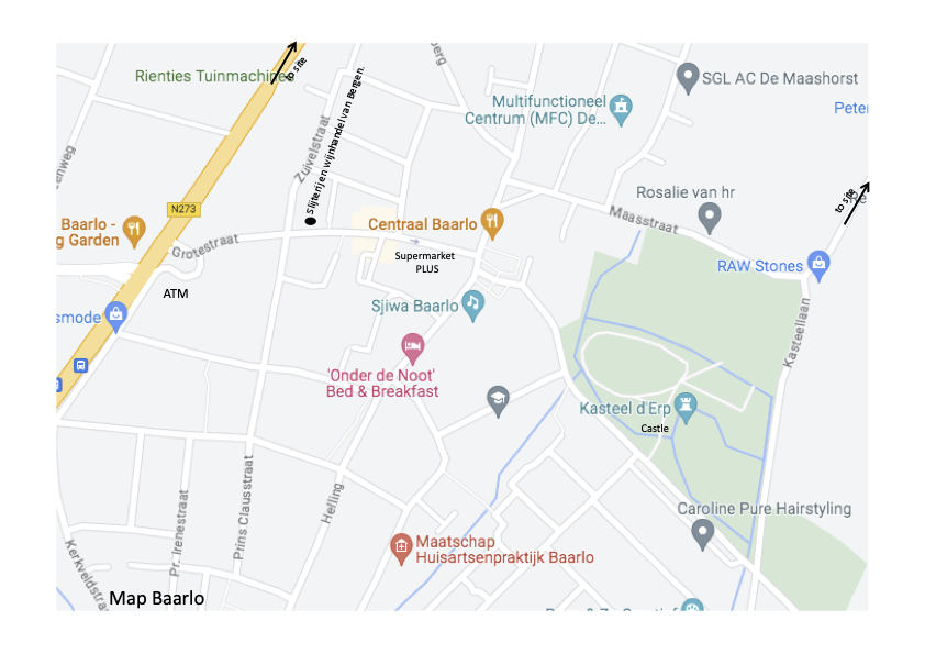 In Baarlo there is another castle. Kasteel d’Erp (Baron Van Erplaan 1, Baarlo). It’s a 22 min. walk (one way, 1.9 km). If you exit the castle grounds, turn left and then right (Ingweg), you’ll walk straight towards it. It’s not open to the public, but can be viewed from the outside and there’s a small park around it.